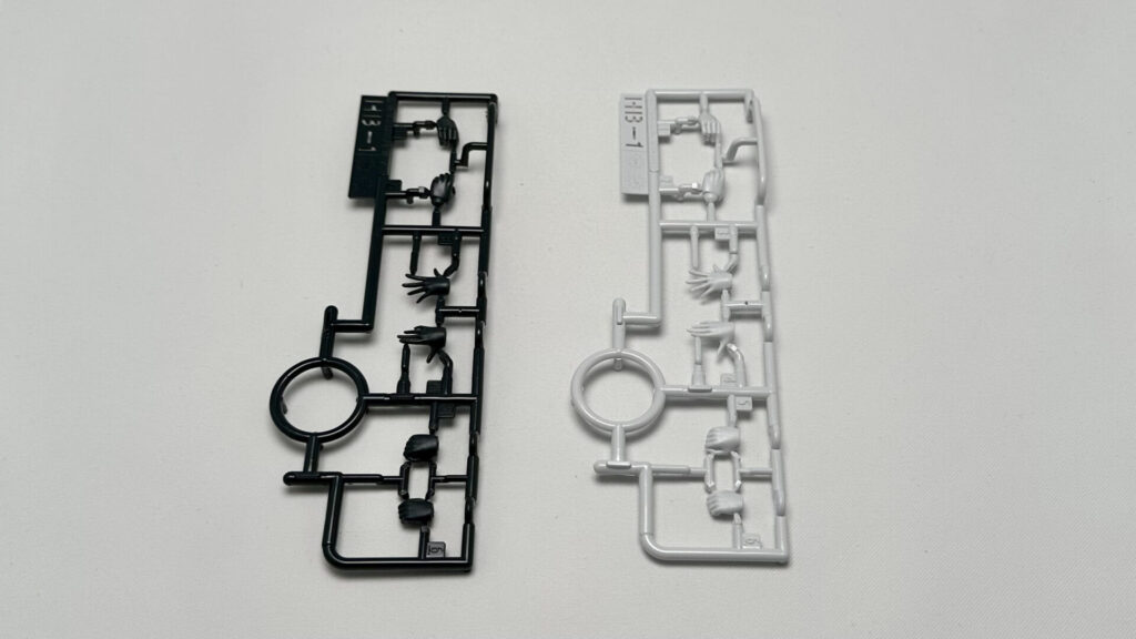 左右対称のモノトーンの為、ハンドパーツのランナーが2色付属